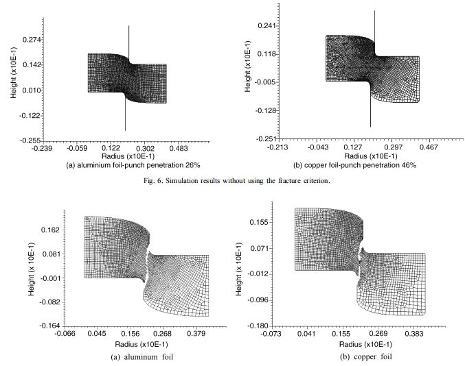 其中,模具磨损过程简化为图4a所示,模具磨损量用a和b表示,当发生磨损时,随着a、b值变化,当模具发生磨损时,有效冲切间隙Cle也会相应增加,如图4b所示,有效间隙满足式(2)关系。冲切间隙和模具刃口的磨损情况对冲切过程有重要影响,随着模具的磨损,冲切间隙增加,模具刃口圆角增大,冲切件的断面质量也会发生改变。