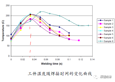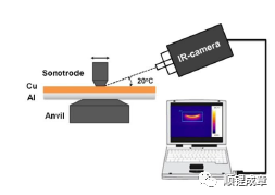 焊接工艺参数不同,导致焊机供给被焊工件的焊接总能量变化,必然引起焊接过程中的摩擦作用不同,致使焊接过程中产生的热量变化,那么焊接过程中工件的温度也将随之变化,焊头-工件接触区温度可以有效反映接头强度,可以通过测量焊接过程中工件的温度预测接头质量。但接触区温度并不是越高越好,对于每种被焊材料匹配,都有一个临界温度值,工件温度小于临界温度时,温度越高则接头强度越高;工件温度大于临界温度时,接头强度则会减弱。